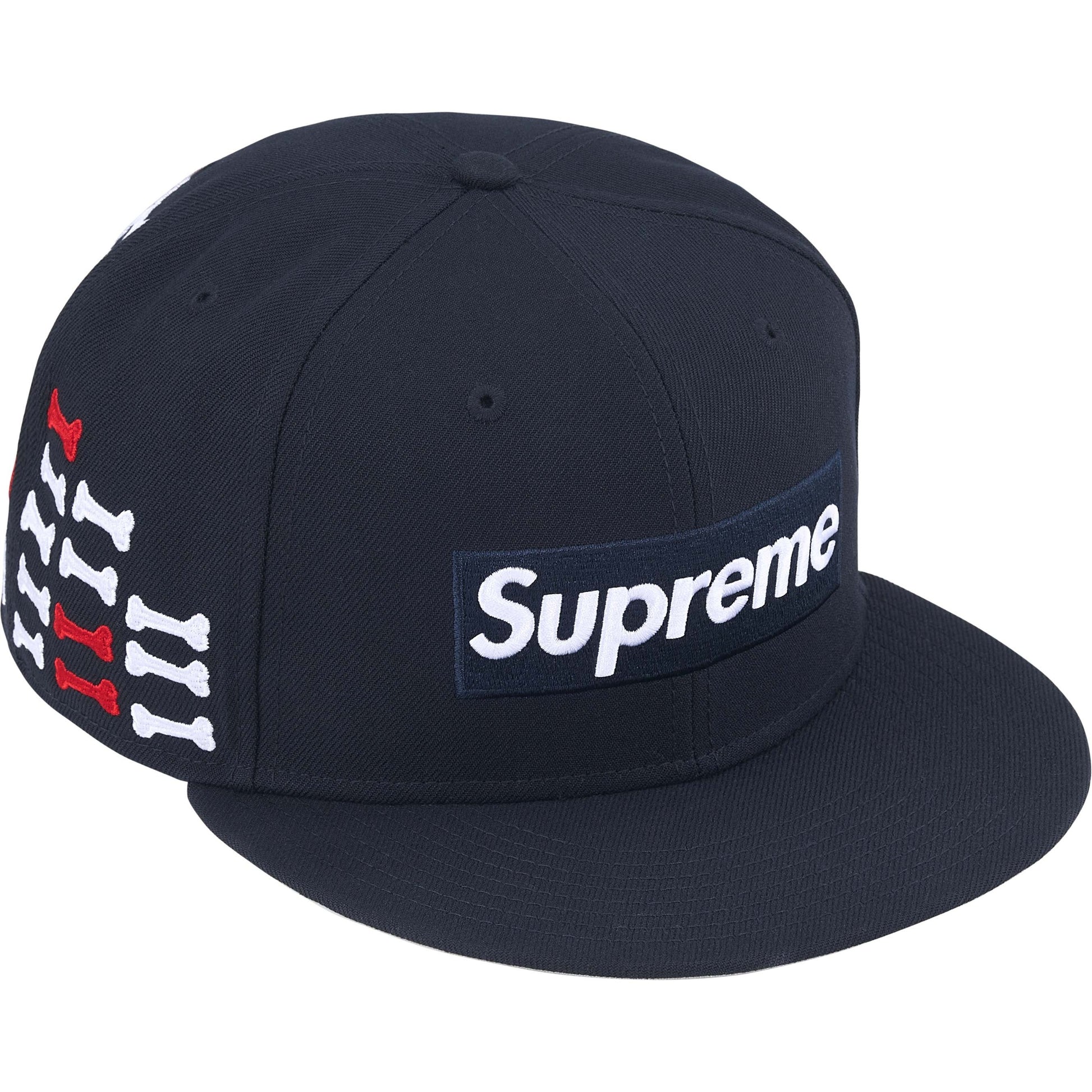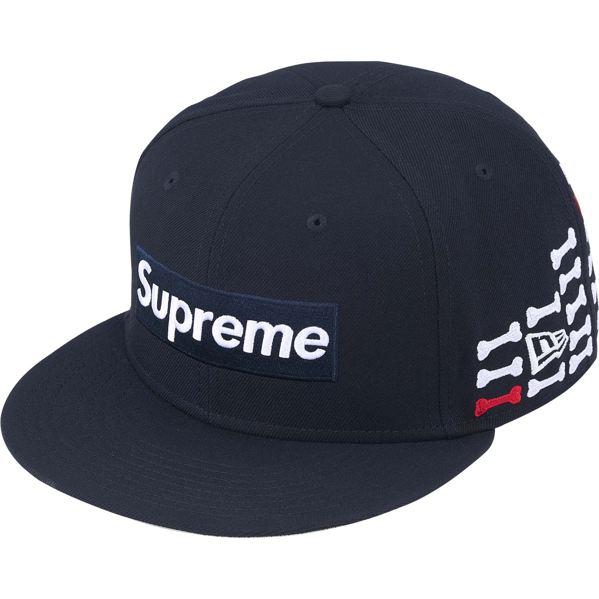 Supreme x New Era 59Fifty Bone Box Logo Navy Fitted Hat